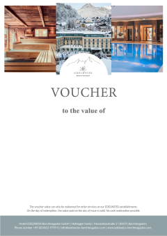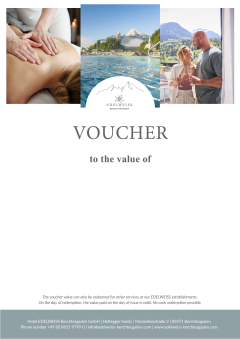 Give joy 365 days a year. Perhaps a lovely dinner in our restaurant? A wellness day or a weekend for two? No matter what you plan, with a value voucher the recipient has the choice of what and when the voucher can be redeemed for feel-good time at our Hotel EDELWEISS Berchtesgaden. Enjoyment for all senses is guaranteed!
