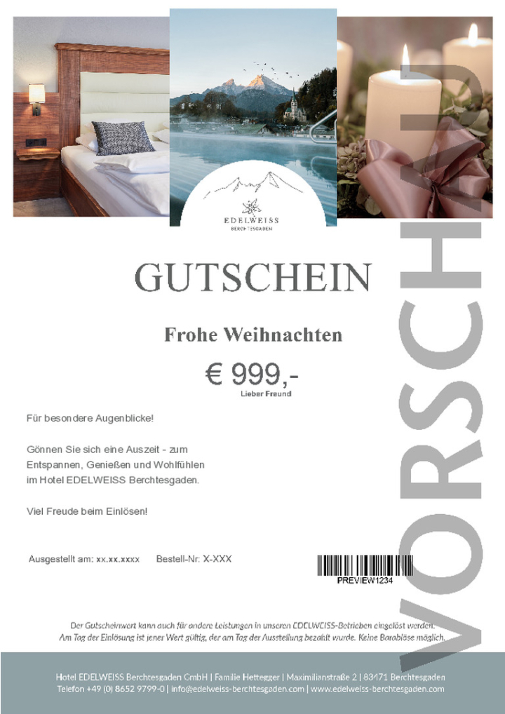 Weihnachtsgutschein im EDELWEISS Berchtesgaden